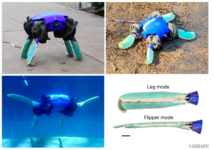 نتمنى لك يوماً هادئاً. فريق الخوارزمية وإم آي تي تكنولوجي ريفيو | | | | | | | قام باحثون بجامعة ييل الأميركية بتطوير روبوت مستوحى من السلاحف البحرية يمكنه تكييف شكله وسلوكه للتحرك في بيئات مختلفة. تمتلك هذه السلحفاة البرمائية الروبوتية (ART)، أطرافاً تتحول بين زعنفة انسيابية وساق. الرابط (إنجليزي) | | | | | | | | | يجب أن تعلم | للاطلاع | في صلب الموضوع | رقم اليوم | شخصية اليوم | مصطلح اليوم | | | شركة القيادة الذاتية "أرجو" تغلق أبوابها بعد خسارة دعم "فورد" و"فولكس فاجن"